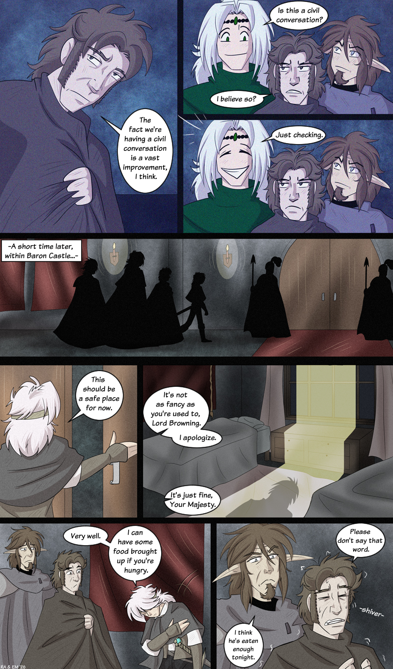 Cecil: This should be a safe place for now. It's not as fancy as you're used to, Lord Browning. I apologize.